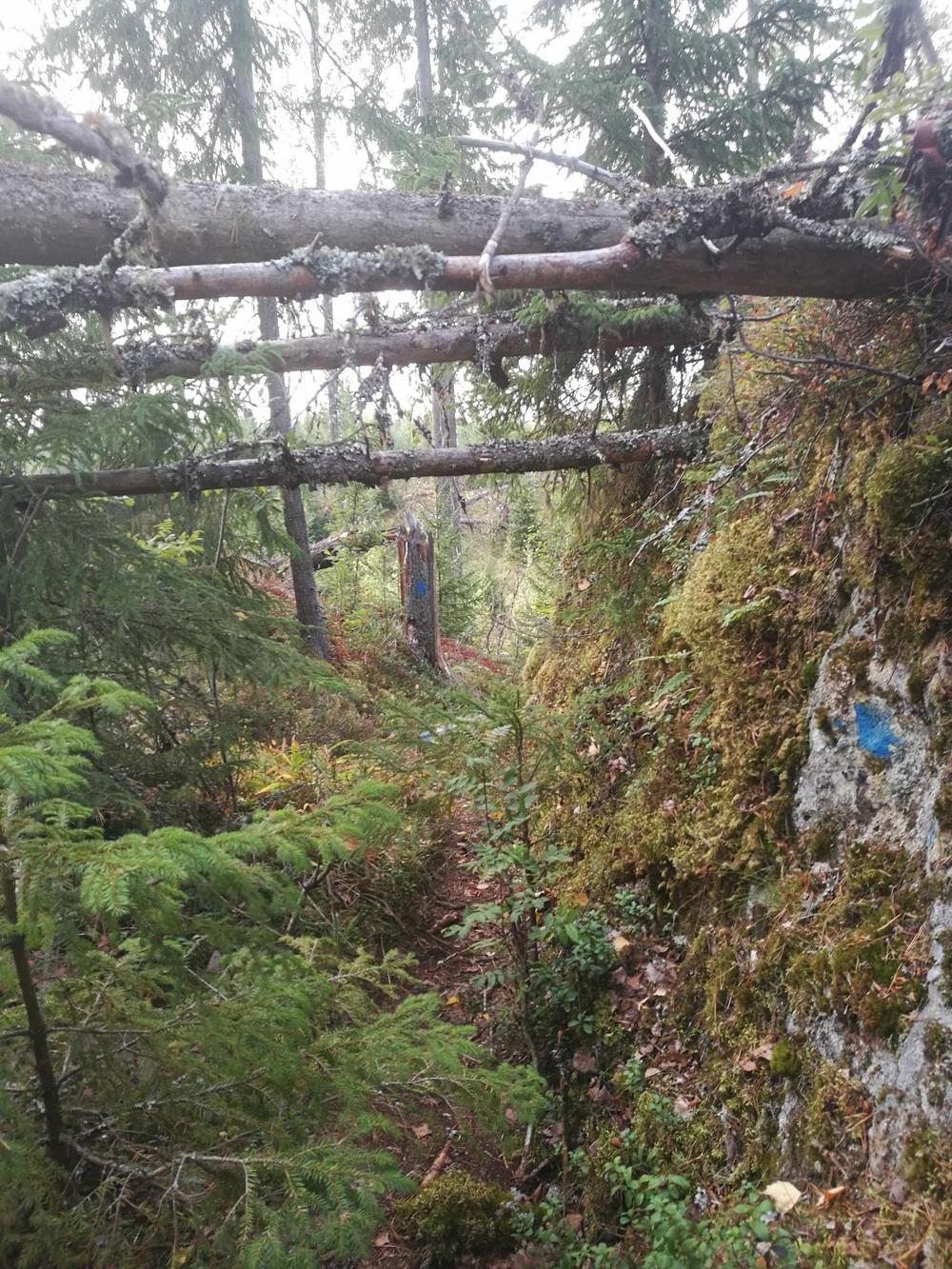 on pieni pätkä, jossa ei ole polkua, vaan vain jokin metsäkoneen ura.