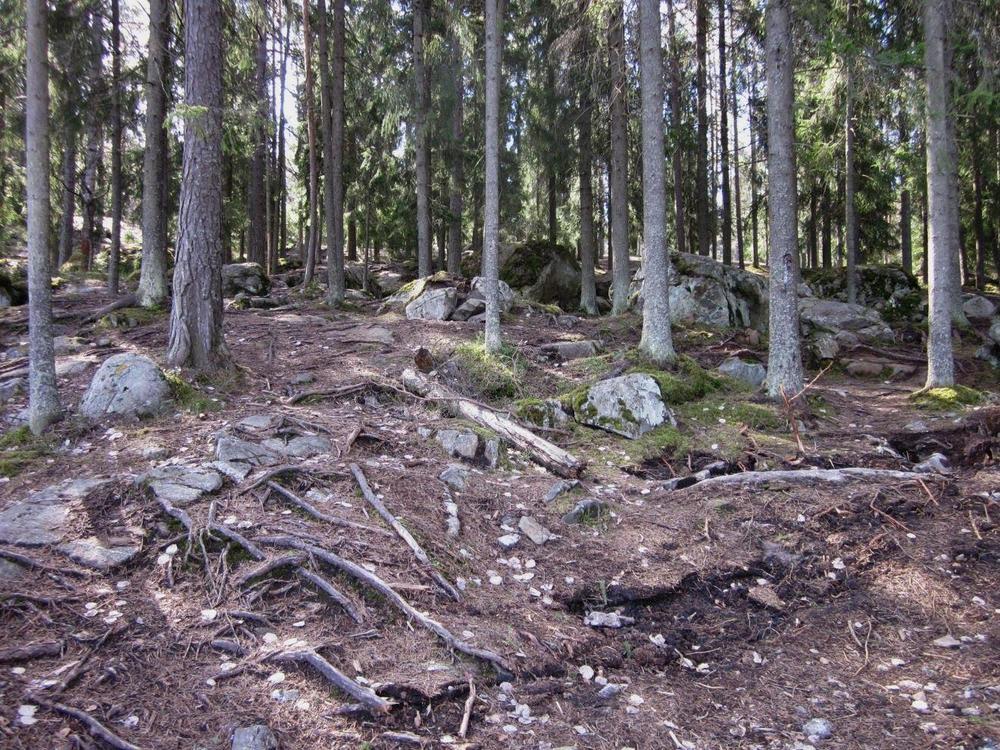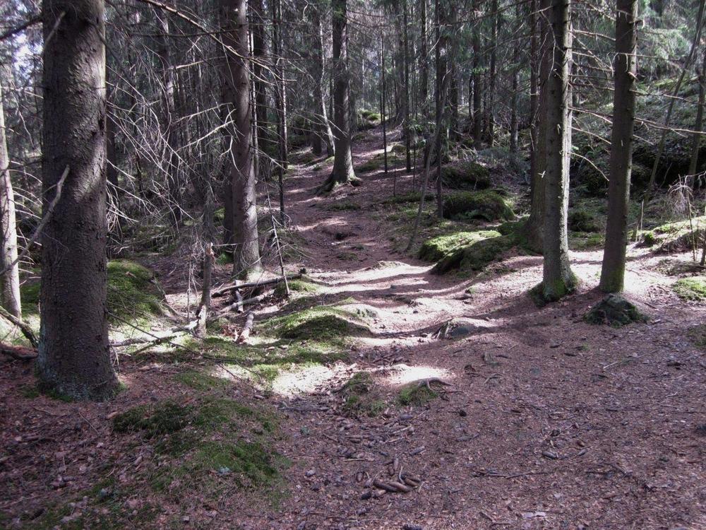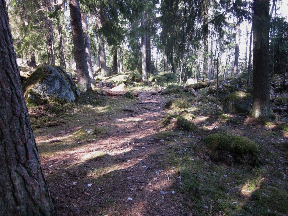 Reitti nousee aluksi Sulkavuoren rinnettä ylös ja sieltä taas alas vastapuolelta. Tottakai tuossakin maastossa voi mennä mitä tahansa lenkuroita, sillä maastossa on runsaasti muitakin polkuja kuin vain tälle gps-käppyrälle kerääntyneet. Pikitietä tai lähinnä sen piennarta ja leveämpää kevyen liikenteen väylää kertyy ehkäpä kilometrin verran.